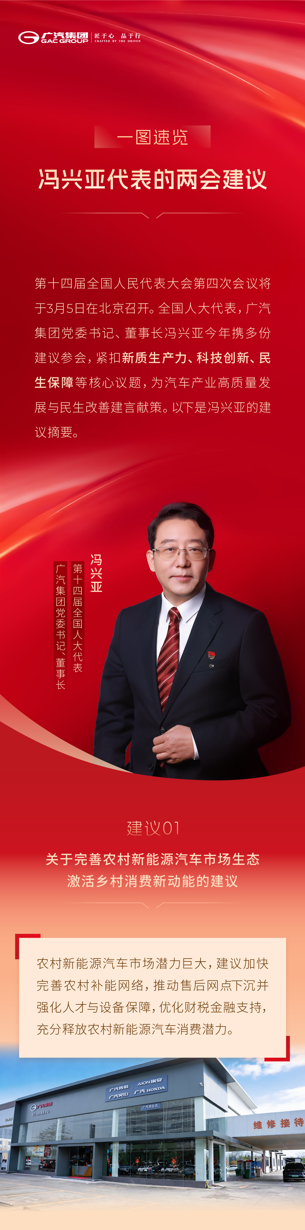 IT之家 3 月 4 日消息,据广汽集团官微,全国人大代表,广汽集团党委书记、董事长冯兴亚今年携多份建议赴京,围绕新质生产力、科技创新、民生保障等核心议题,为汽车产业高质量发展与社会民生改善建言献策。