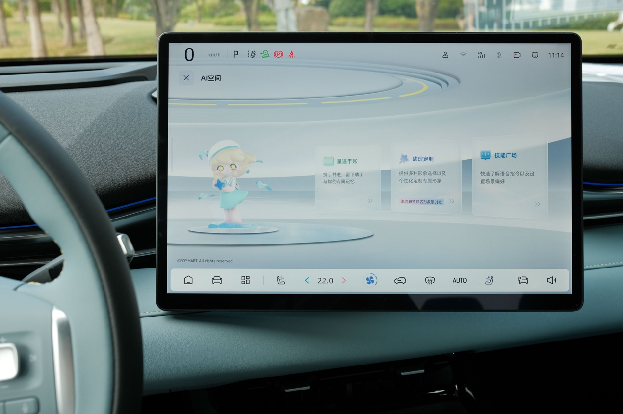 在车机的智能化方面,深蓝 S05 支持连续语音指令,最多可以一句话包含 4 个指令,并且能够准确识别不同音区的指令,提升了安全性。此外,深蓝 S05 还全球首发了泡泡玛特联名智慧语音助手,提高了可玩性。