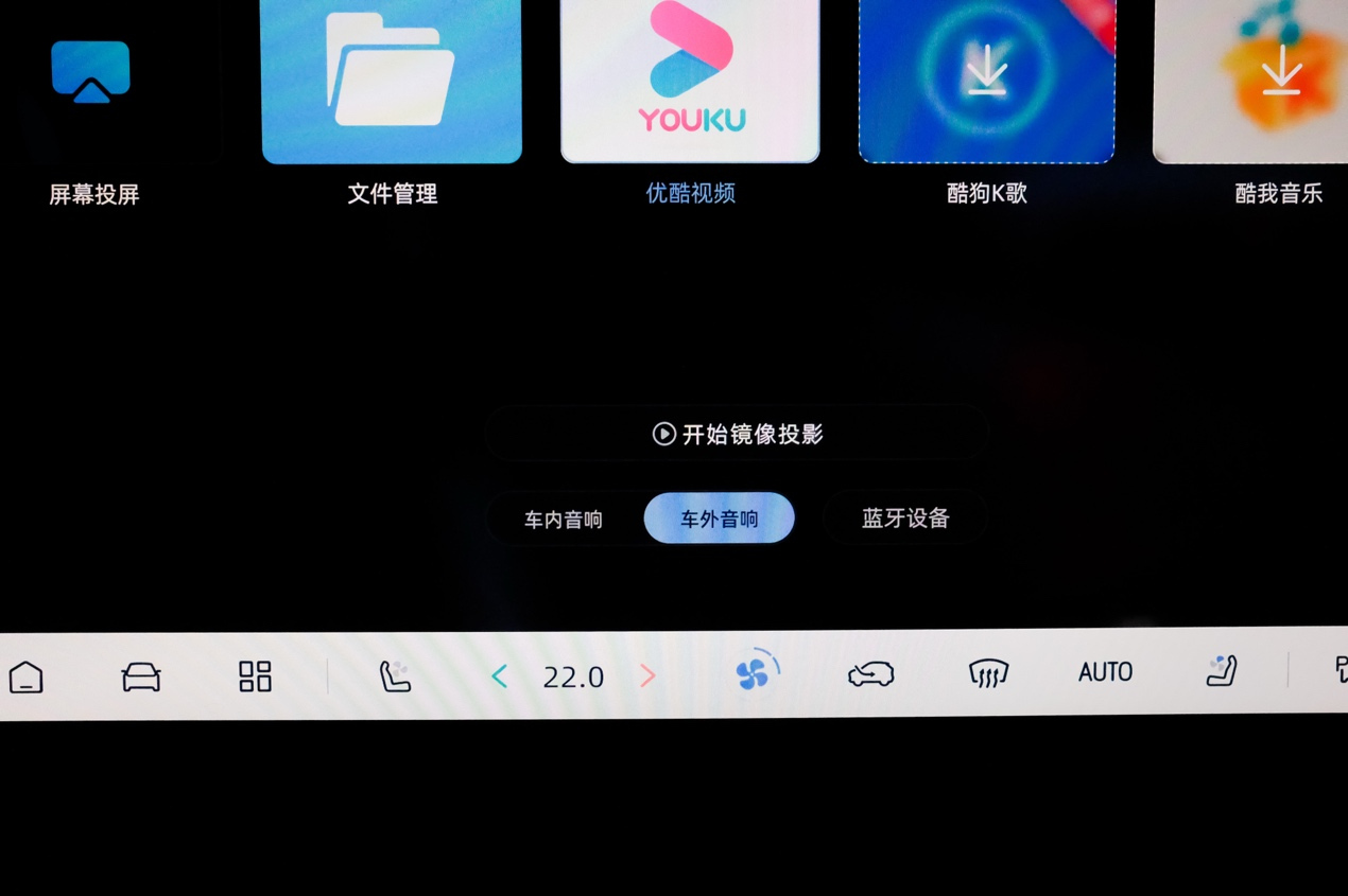 画面投射到外部时,还可以选择音频输出设备,选择用车外音响播放,妥妥的露营气氛组。