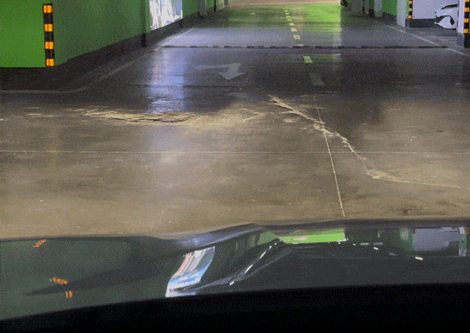 如果说上述的几个应用场景是“好玩”的话,那么这个光影大灯接下来的两个功能就很实用了,一个是在地库转向的时候,可以吧转向标识投射在地面上,提醒行人。