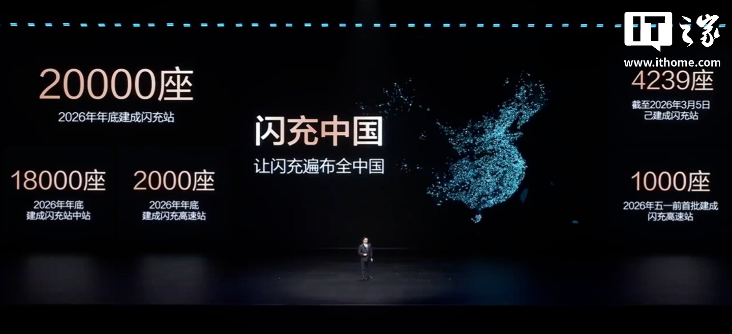 闪充高速站:到年底建成 2000 座。在高速公路,平均每隔 100 多公里就有闪充站。截至 2026 年 3 月 5 日,比亚迪已经建成 4239 座闪充站,到 2026 年五一前将首批建成 1000 座闪充高速站。