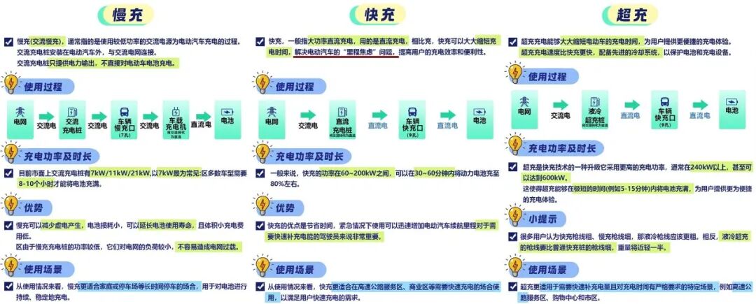 图/慢充-快充-超充的区别 来源/互联网 新能源观截图