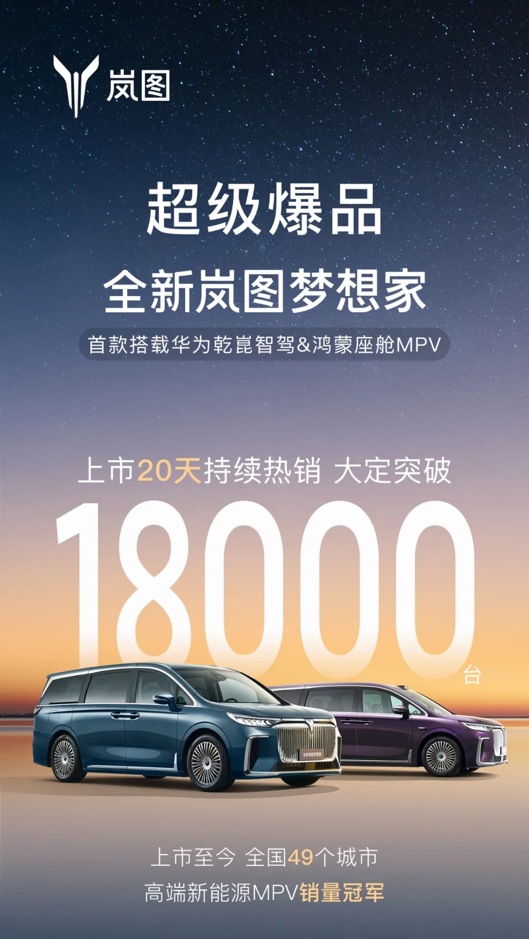 IT之家 10 月 9 日消息,据岚图汽车官方,全新岚图梦想家 MPV 上市 20 天大定突破 1.8 万辆。