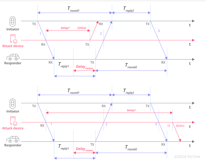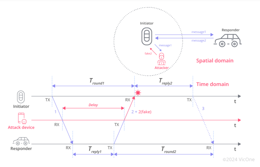 正如之前所述,当钥匙和汽车之间的信号通过由攻击者控制的一对无线电设备创建的“隧道”进行扩展时,就会发生中继攻击。这是可能的,因为汽车与其钥匙扣之间的通信通常不受时间影响。然而,由于 UWB 技术具有高时间分辨率和精确的 ToF 测量,因此在很大程度上不受中继攻击的影响。UWB 的精确度确保任何中继信号的尝试都会导致明显的时间差异。配备 UWB 的汽车可以通过计算钥匙链发射信号和汽车接收信号之间的时间差,轻松识别钥匙的范围。
