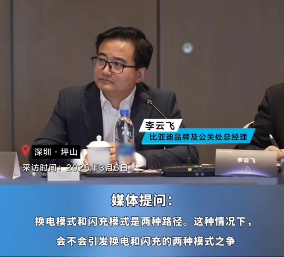其中,令我印象深刻的,首先肯定是比亚迪品牌及公关处总经理李云飞的一段输出:“行业在技术路线上,就应该百花齐放、殊途同归,看起来闪充和换电是不一样的路线,但大家共同的目标都是促进油转电。”