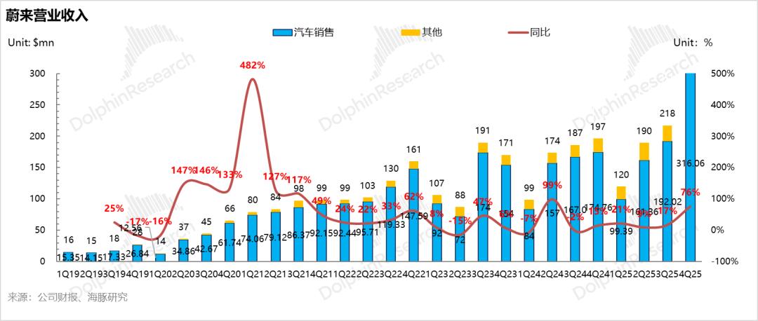 蔚来四季度整体收入347亿,同比增速高达76%,也超出市场预期的336亿,核心还是由卖车收入超预期拉动: