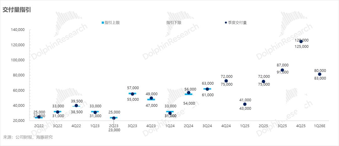 结合已公布的1、2月实际交付数据(分别为2.7万和2.1万辆),对应隐含的3月销量约为3.2万-3.5万辆。尽管3月表现相比2月的低谷(受春节效应叠加退坡冲击影响)将迎来明显的环比回升,但一季度8-8.3万辆的总指引,依然低于市场8.9万辆的普遍预期。