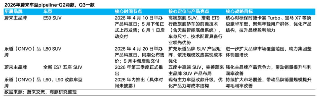 也因此可看出,2026年蔚来车型的pipeline也相对强劲,也是管理层指引2026年高增的销量的信心来源,而公司战略中心也明显转向“大SUV”和“高端化上”。