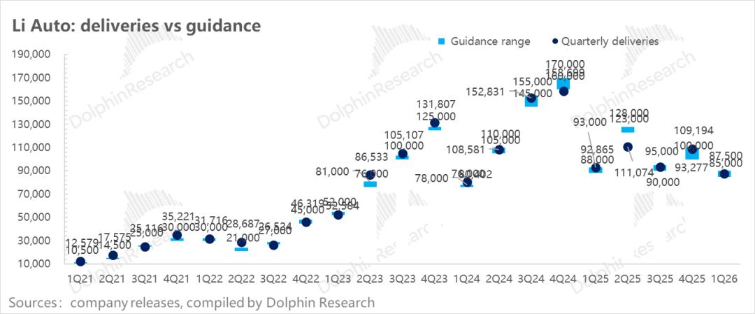 理想26一季度销量指引8.5-9万辆,中值基本和市场预期的8.8万辆持平。