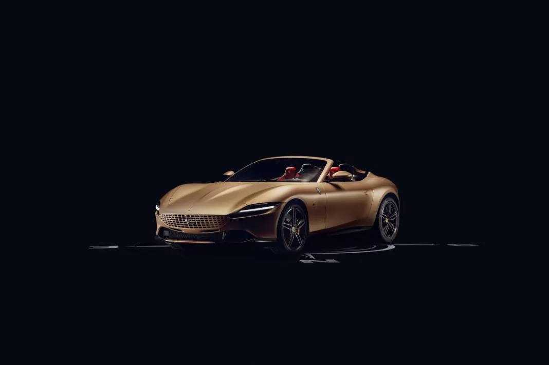 IT之家 10 月 10 日消息,法拉利推出了 Roma Spider 个性化定制版,该车型配备了独特的车身徽标、金色车漆以及木质内饰等个性化元素。