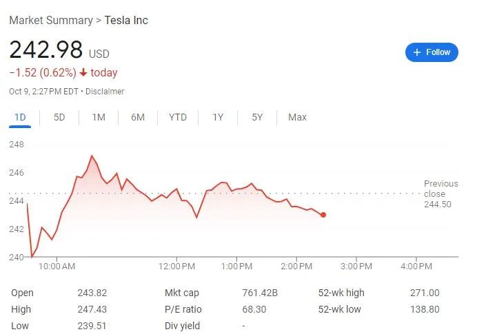 周三特斯拉股价波动走低,低开2%后在午盘前一度小幅转涨,随后再次掉头下挫,但过去一个月累涨超12%,并升破50日均线关键技术位,从4月底的低点反弹了75%。