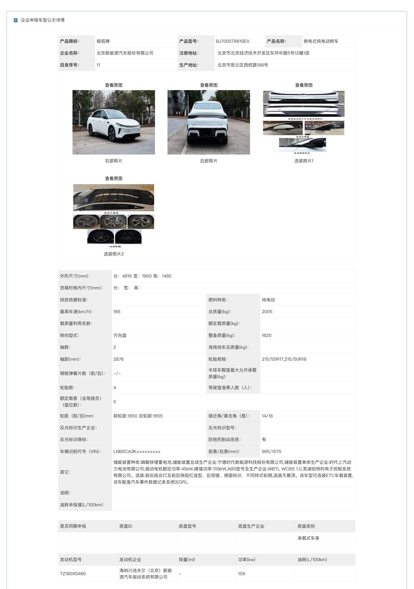 IT之家 3 月 16 日消息,工信部 3 月 13 日公布的第 405 批《道路机动车辆生产企业及产品公告》新产品公示中,北汽极狐 S3 换电式纯电轿车申报信息首次公布。