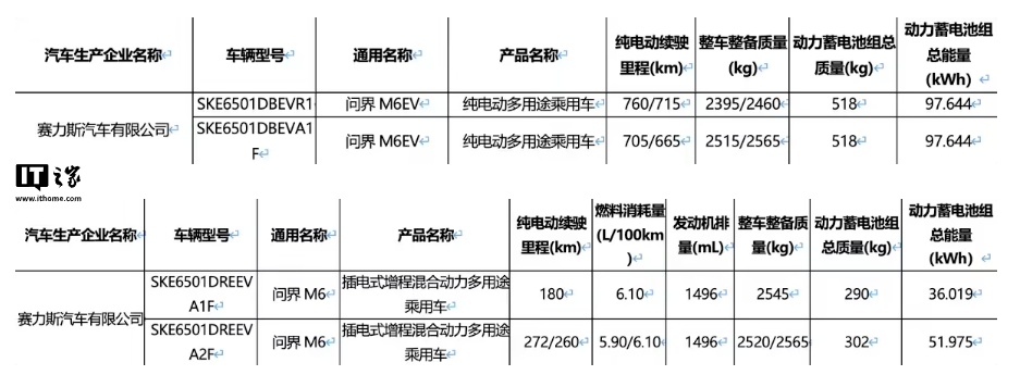 据IT之家此前报道,工信部最新发布的《第二十八批减免车辆购置税的新能源汽车车型目录》披露了问界全新车型 M6 的续航信息,其中提到最高纯电续航达到 760km。该车将于明日正式发布并开启预订,有望于二季度正式上市。