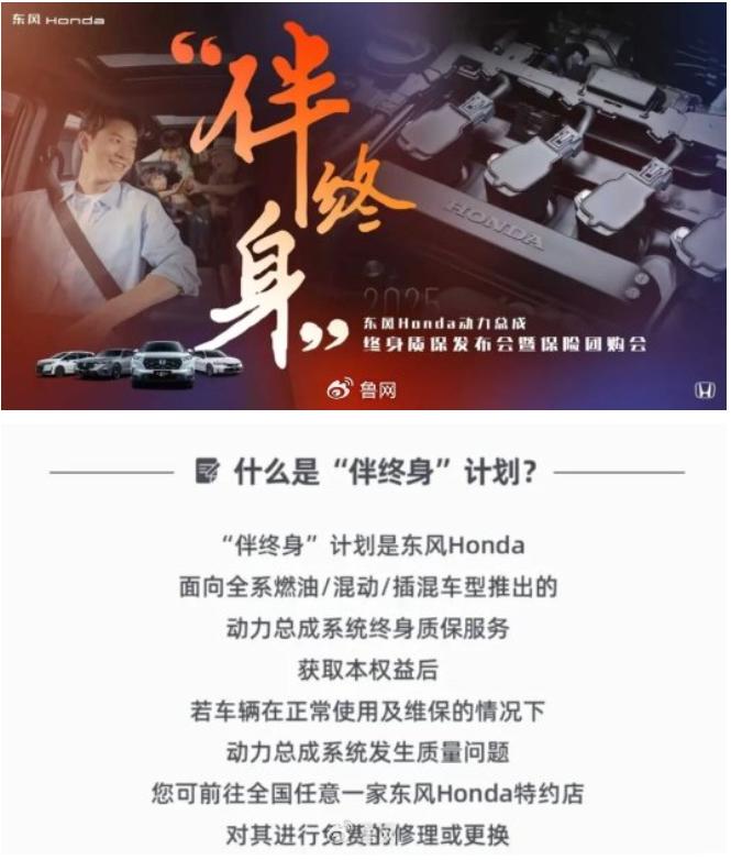 3月2日,据鲁网报道,东风本田于2025年10月18日正式发布“伴终身”动力总成终身质保服务。官方宣传称,该质保覆盖发动机、变速箱、动力蓄电池等动力总成核心部件,在规定范围内,车辆相关部件出现质量问题,用户可在全国任意东风本田特约店享受免费修理及更换服务。
