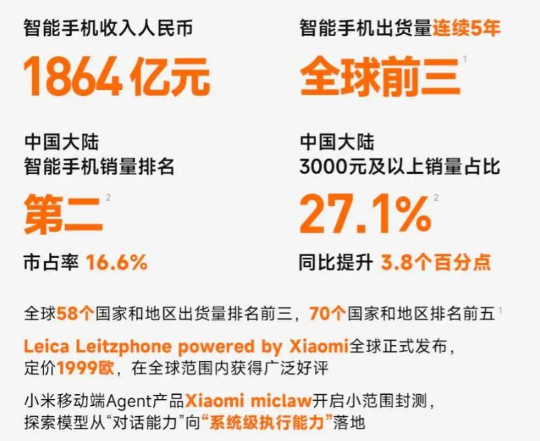 “依托全球前三的规模优势与高端化红利,小米会动态寻找增量机会,提升手机的差异化竞争力,Xiaomi miclaw就是一次积极尝试。”