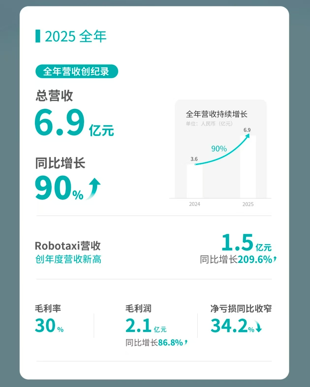 3.文远知行2025年总营收达6.9亿元,同比大幅增长90%
