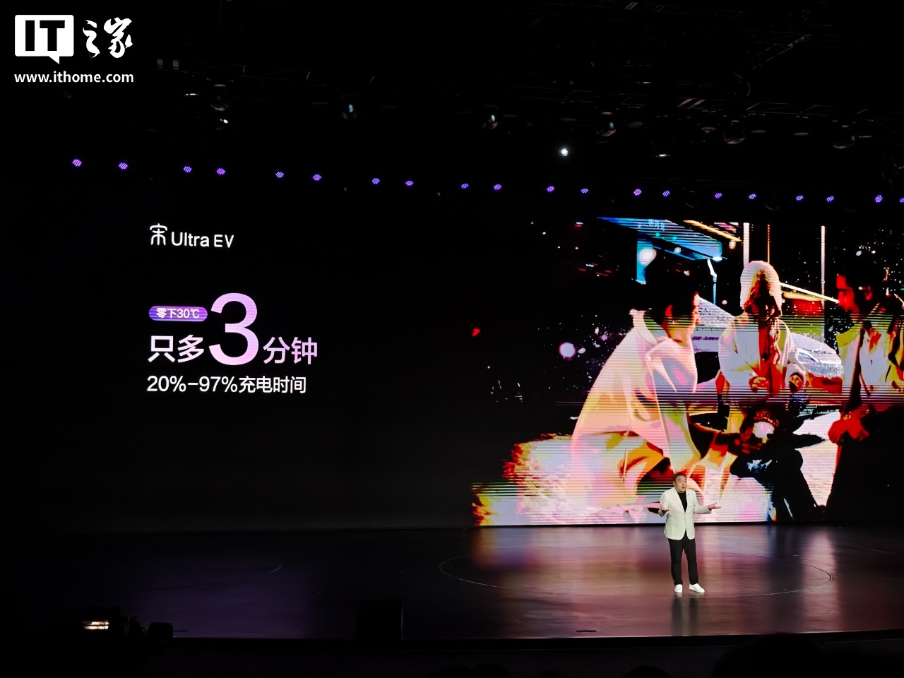 IT之家 3 月 26 日消息,在今天(3 月 26 日)召开“闪充一下宋弛出发”活动中,比亚迪宋 Ultra EV 带来全新闪充技术,全系搭载第二代刀片电池,常温下 5 分钟可充至 70% 电量(约 400km 续航),9 分钟充至 97%;零下 30℃ 极寒环境充电仅比常温多 3 分钟。