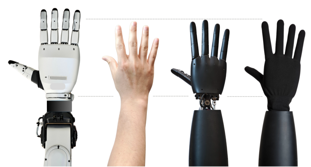 为了更好地复用通过人手采集的数据,机器人仿生手需要尽可能设计成和人手 1:1 的比例,具备近似的构型。同时在可达空间、驱动能力、惯量分布及操控响应等方面也尽量对标人手,减少仿真和真机的差异,减少同构问题带来的影响。