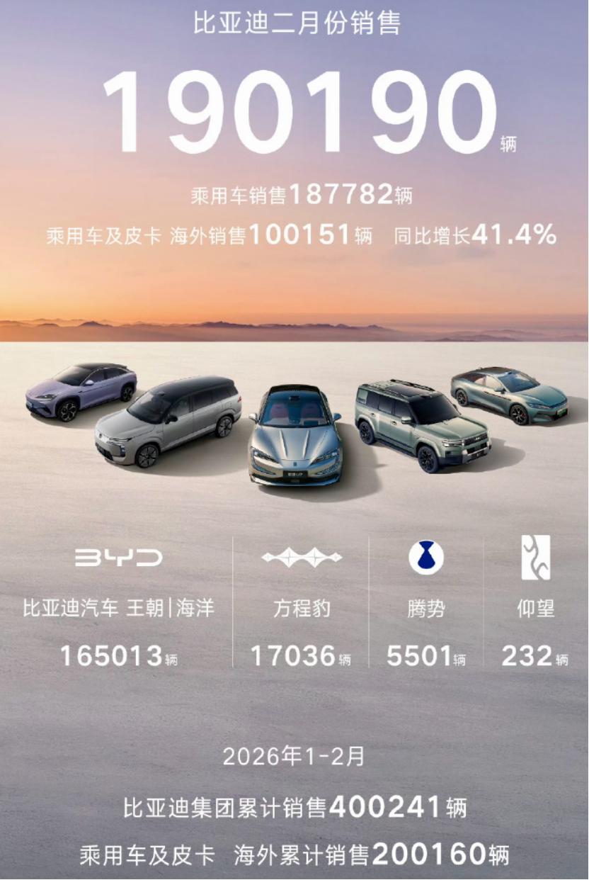 图/2026年2月比亚迪销量 来源/互联网 新能源观截图