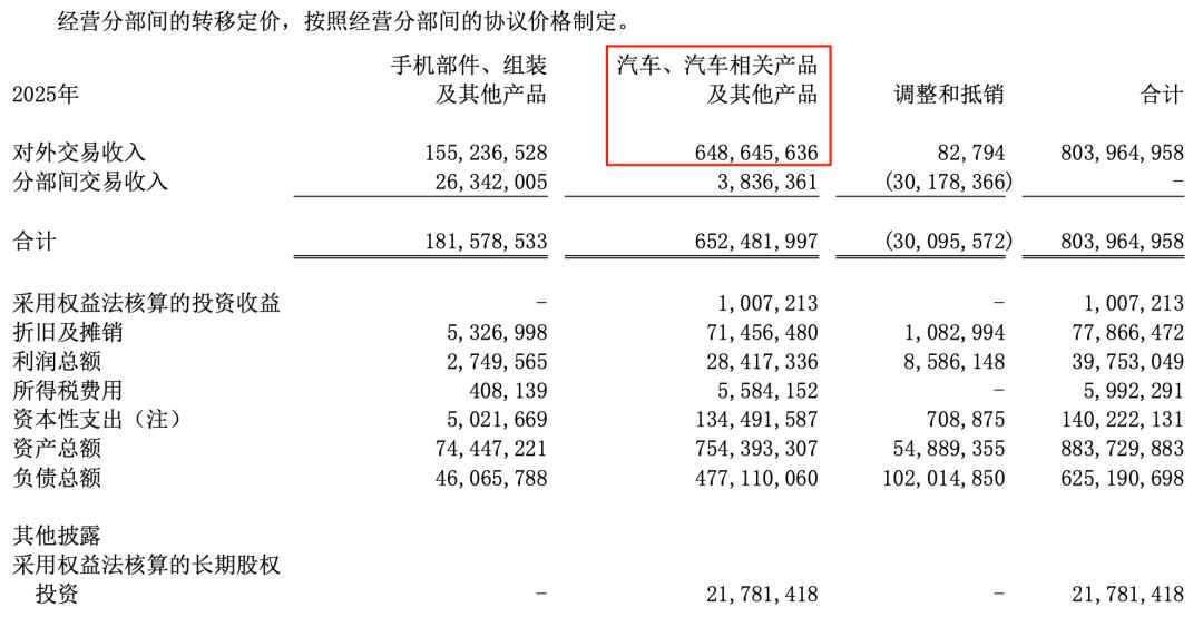 图/2025年比亚迪部分营收数据 来源/互联网 新能源观截图