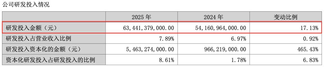 与此同时,技术这条腿也在承压。2025年,比亚迪的研发投入达到了创纪录的634亿元,同比增长17%,近乎是净利润的两倍,而巨额研发主要转化为了智能驾驶技术、长续航插混技术和第二代刀片电池及闪充技术等。