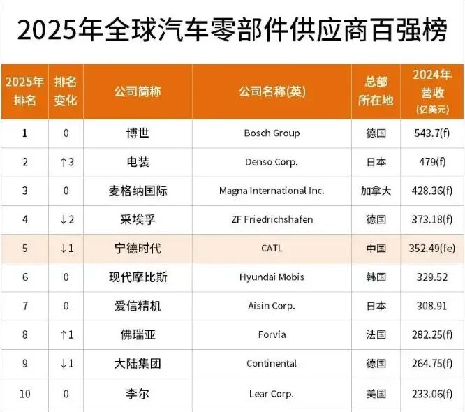 全球汽车零部件供应商百强榜