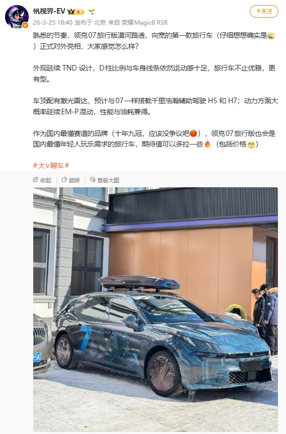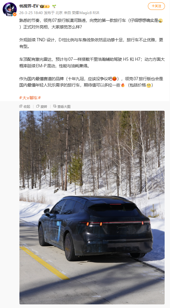 《领克 07 旅行版车型谍照曝光,年内发布》