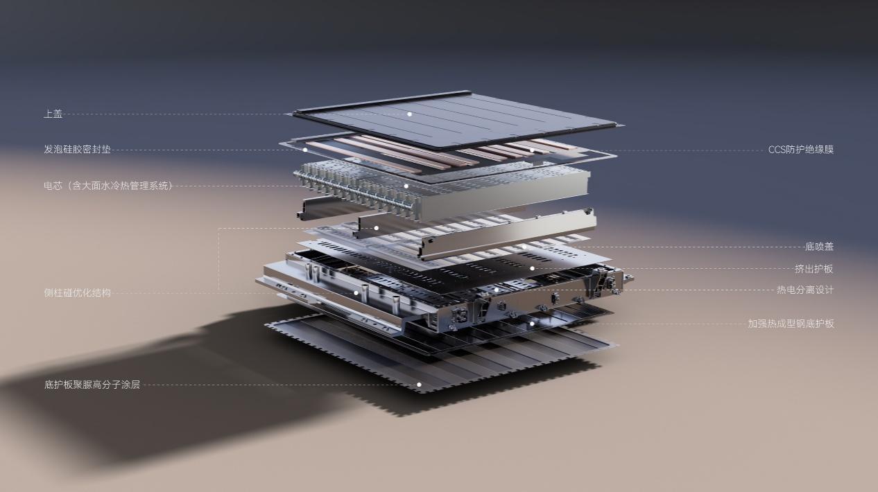 三电领域,中国首发产品将全系标配800V高压增程平台,并与宁德时代联合开发全地形专用骁遥增·混电池。该电池支持峰值6C充电倍率,峰值充电功率350kW,并采用宁德时代NP2.0无热扩散技术及烟气与高压主动隔离技术。