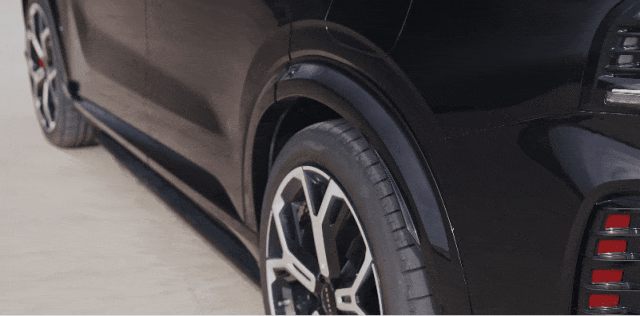 为了支撑三电机的狂暴输出,这玩意的胎宽达到了惊人的前 275 后 315,如果我没有记错的话,这应该是国产 SUV 里第一个用上 315 后胎宽的车,它的抓地力根本在短暂的试驾会中根本试不出极限。