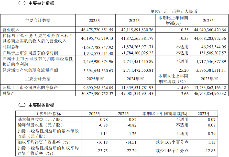 4月4日,江淮汽车发布2025年年度报告。报告显示,2025年度公司实现营业收入464.76亿元,同比增长10.35%;实现归属于上市公司股东的净利润为-17.03亿元。