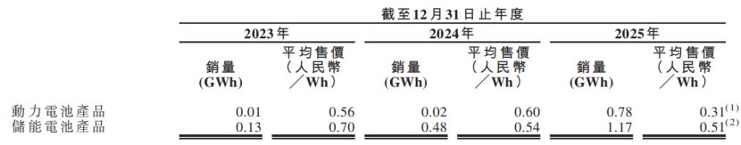 从2025年开始,公司向头部汽车OEM大批量供应动力电池产品,平均售价则从2024年的0.60元/Wh降低至2025年的0.31元/Wh。