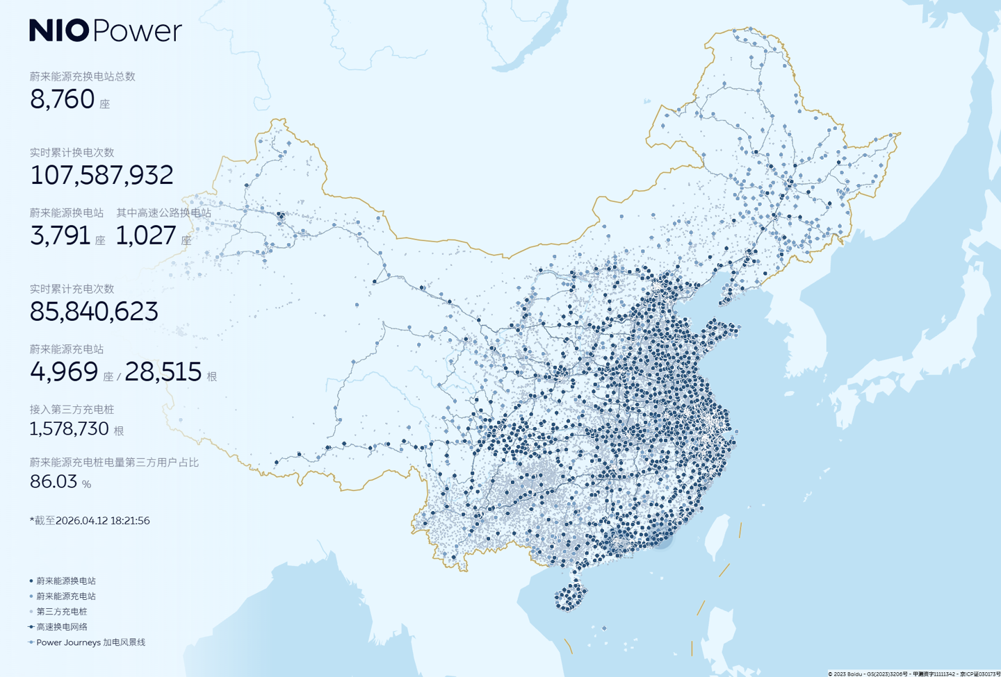 据IT之家此前报道,今年 2 月 6 日 22 时 33 分 18 秒,蔚来 1 亿次换电正式达成。在 2 月 9 日,蔚来创始人、董事长、CEO 李斌发布长文,称 2026 年计划新建 1000 座换电站,加电风景线增至 100 条,继去年 G318 川藏换电路线、滇藏换电路线贯通之后,今年将打通丝绸之路换电路线。