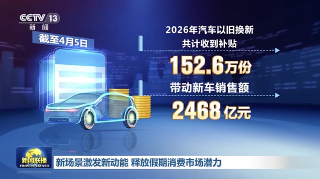 但在这其中,在购车补贴政策驱动下的前3个月,仿佛又出现了一丝曙光。商务部最新数据显示,截至4月5日,2026年汽车以旧换新已收到补贴152.6万份,带动新车销售额2468亿元,成为低迷市场中一抹亮眼的亮色。