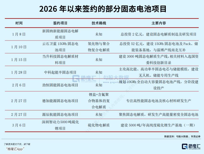 仅2026年一季度,国内就有超过16个固态电池及材料项目投产、开工或签约,产业链的热度已经肉眼可见。