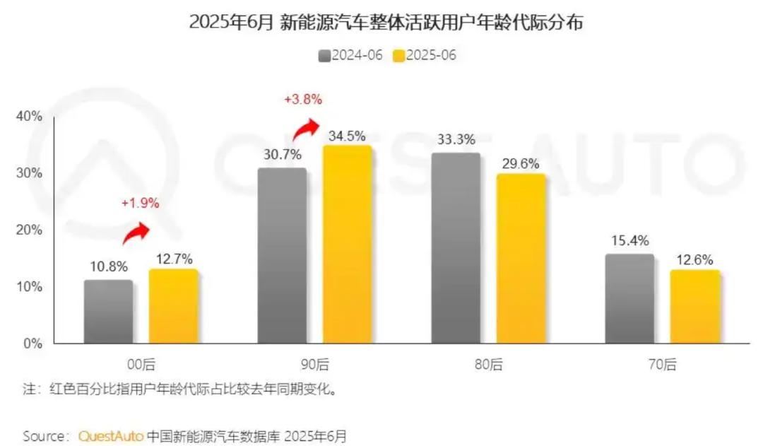 一份来自杰兰路发布的《2025年度新能源汽车消费者行为研究》显示,新能源汽车的车主年龄日趋年轻化。与此同时,首购用户的占比提高到了40%,比2024年提升了4.5个百分点。