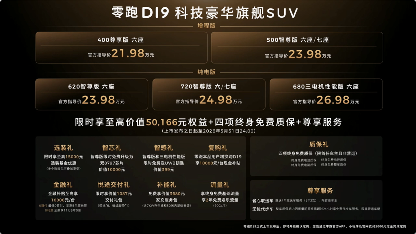 《售价 21.98 万元起,零跑 D19 豪华旗舰 SUV 上市》