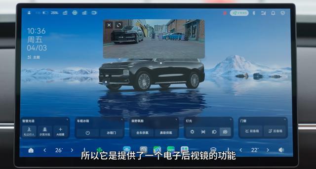 还有,后排不是有后排屏幕么,一般来说带了这个配置,前排中间的后视镜要换成流媒体的以防被遮挡。而 D19 依旧是一个机械的,只是在中控屏幕里有一个电子后视镜的选项,虽说还算清晰,但是并不是很符合直觉,还是不方便。