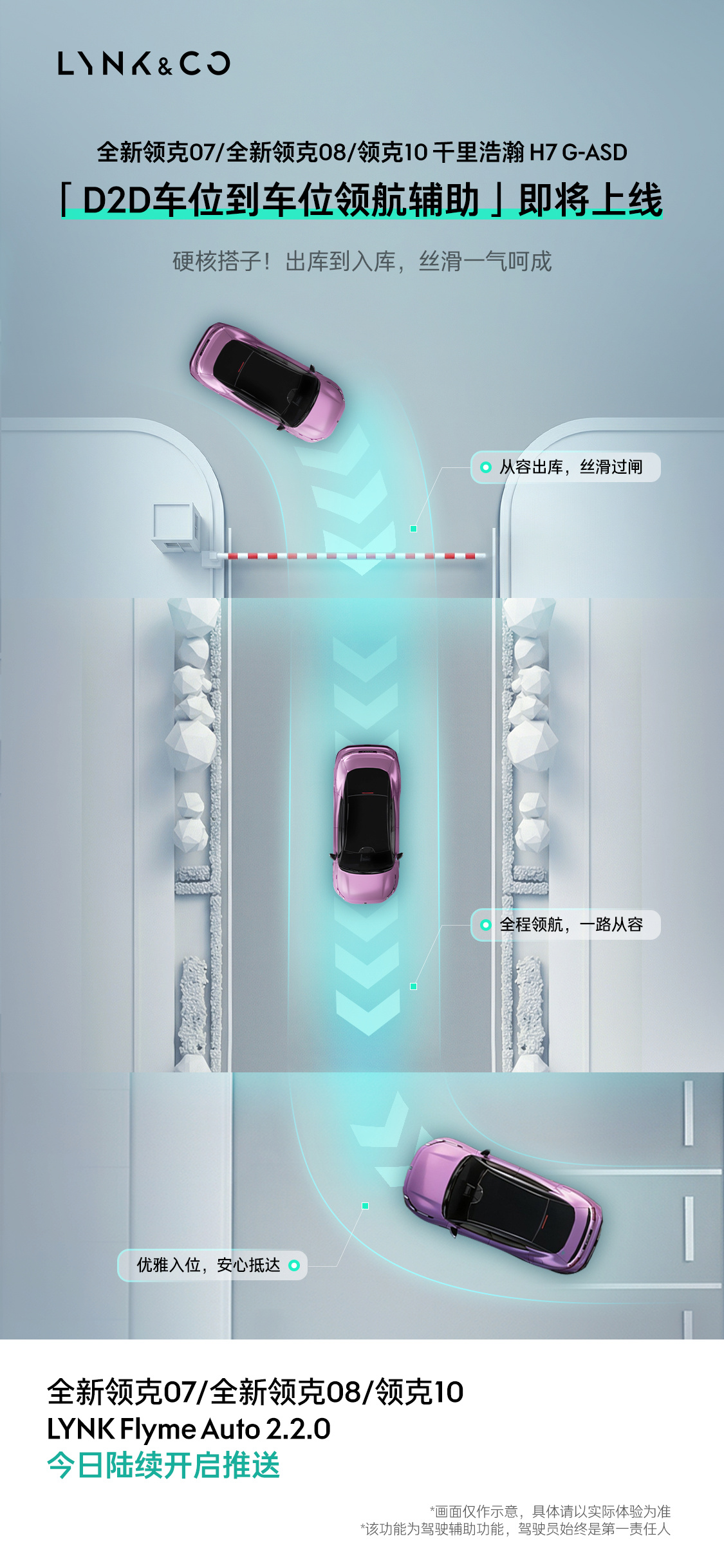 IT之家 4 月 20 日消息,据领克汽车官方消息,全新领克 07、全新领克 08 和领克 10 的 LYNK Flyme Auto 2.2.0 系统今天开启陆续推送,新增千里浩瀚 H7 D2D 车位到车位领航辅助功能,出库 → 行驶 → 入库一条龙。