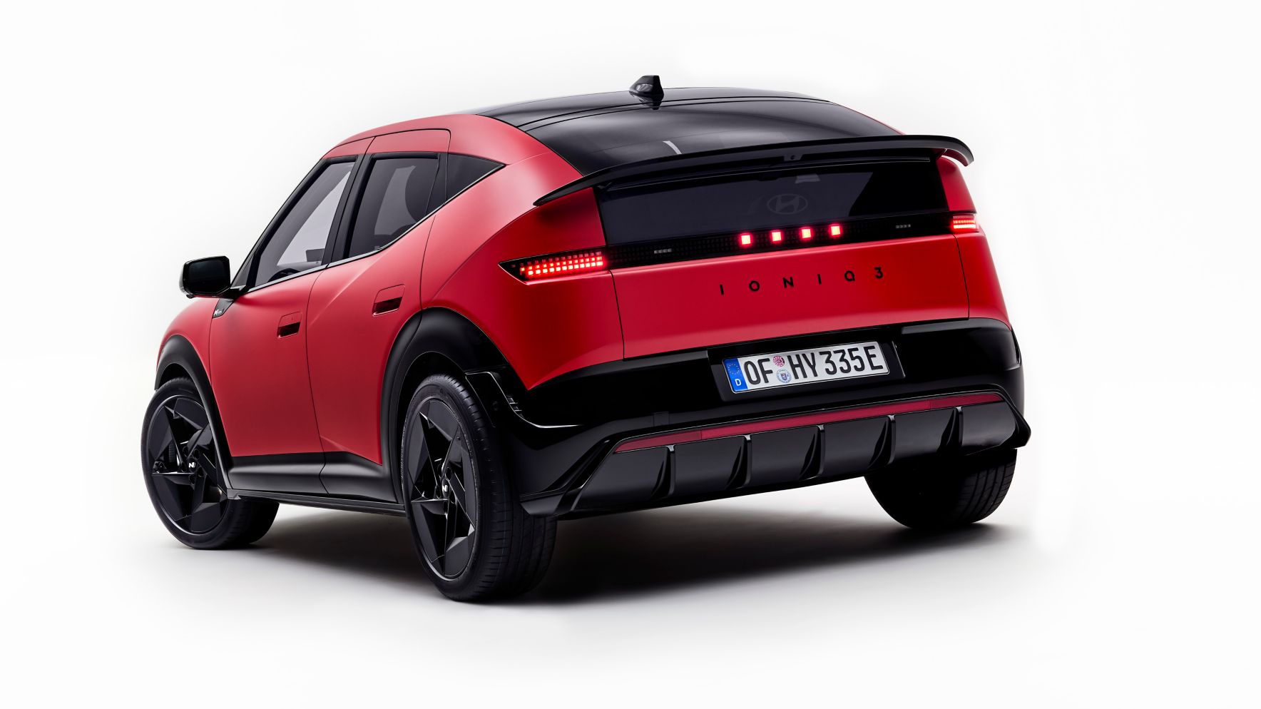 IONIQ 3 采用“钢铁艺术”设计语言和全新 "Aero Hatch" 车身造型,风阻系数 0.263。其宽 1800mm、高 1505mm、轴距 2680mm,长度根据版本不同为 4155mm 或 4170mm,质量 1550~1580kg。