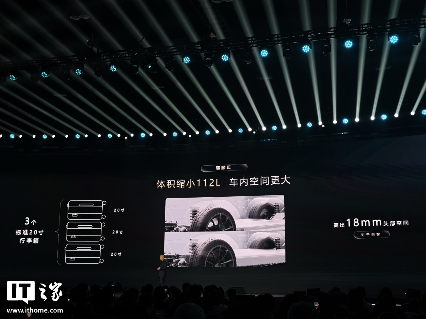 电池体积缩小,也将为车辆的车内空间带来正面影响:体积缩小 112L,相当于 3 个标准 20 寸行李箱,乘客也将多出 18mm 高的头部空间。
