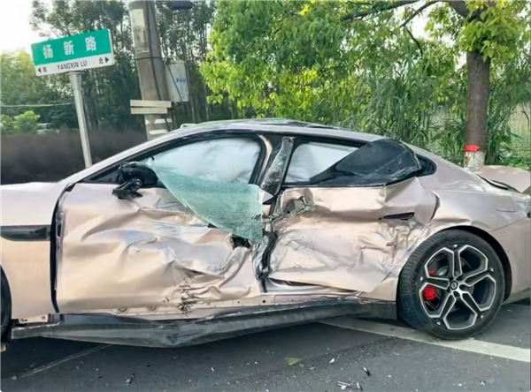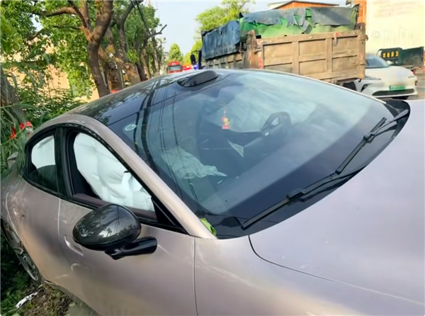 事故现场的照片能看到,车身侧面被大货车撞得严重变形,气囊全爆,但座舱空间基本完整,驾驶员被牢牢保护在里面。车虽然撞废,人却毫发无伤,车主也很感慨,直接又定了一台同款。