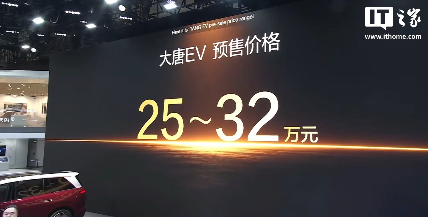《王朝网首款 D 级旗舰 SUV:比亚迪大唐 EV 开启预售,25-32 万元》