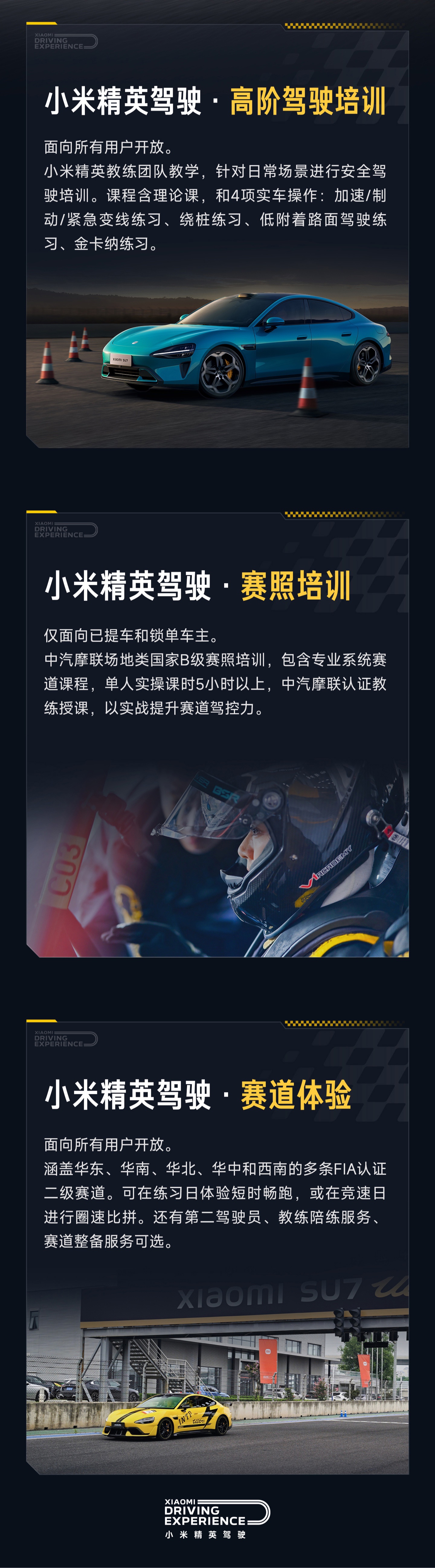 2026 小米精英驾驶包含高阶驾驶培训、赛照培训、赛道体验三项活动,IT之家整理如下: