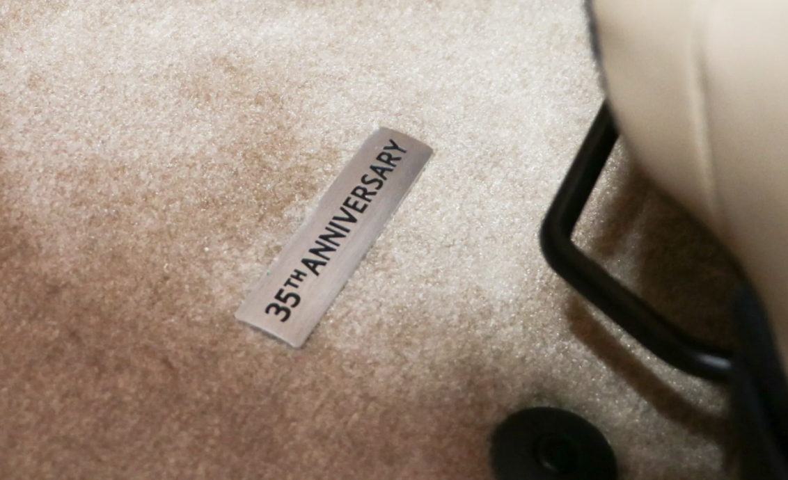 内饰方面,该车采用棕褐色材质,运动座椅头枕处带有 35 周年纪念徽章,车内地毯也印有 35 周年纪念版图样。