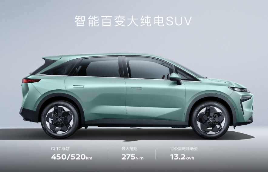 动力方面,该车搭载启辰鲁班电池(磷酸铁锂),电机峰值功率 155kW 和 160kW 两个版本,电机峰值扭矩 275N・m,CLTC 工况续航里程提供 450km 和 520km 版本。