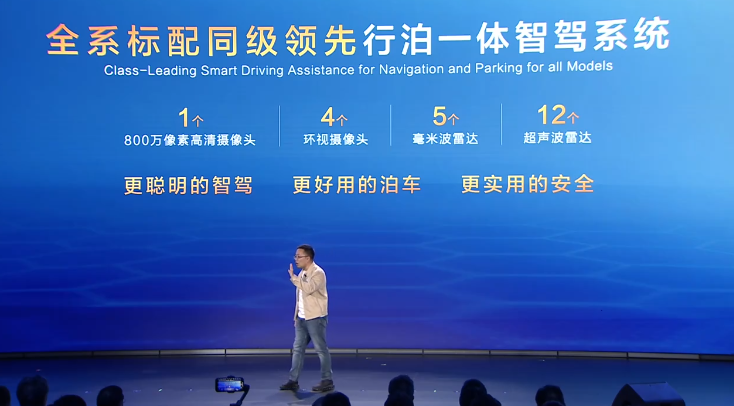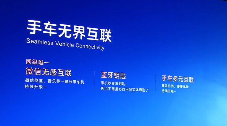 车内提供热浪橙、雾光蓝、星岩灰三款内饰配色,搭载了 2.5K 分辨率的 15.4 英寸“向日葵”屏幕、64 色环抱式氛围灯、13L 双层保温扶手箱、35 处储物空间、14 扬天空环绕音响系统、主驾 8 向电动调节(带腰托)、女王副驾、50W 无线充等等。