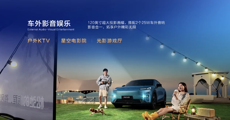 该车搭载 DEEPAL 百万像素智趣光影大灯,支持户外 KTV、星空电影院、光影游戏厅等车外影音娱乐,提供 120 英寸超大投影画幅,搭配 2 个 25W 车外音响,此外该配置还支持个性动态迎宾、智慧灯语等功能。