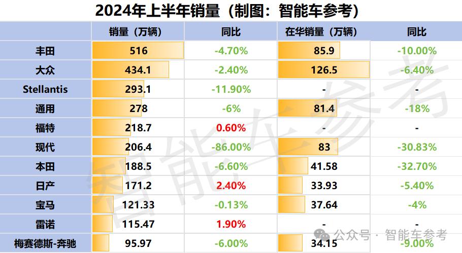 除了福特、日产和雷诺以外,其他车厂半年销量都惨遭“滑铁卢”;在中国市场更是集体遇冷,销量下滑严重。