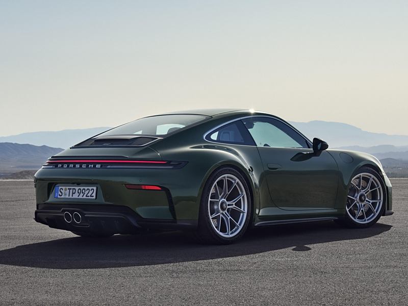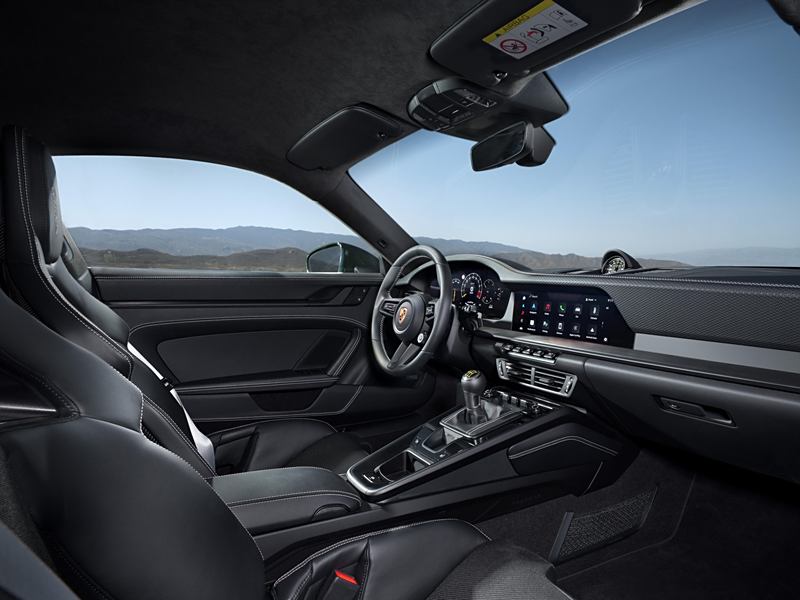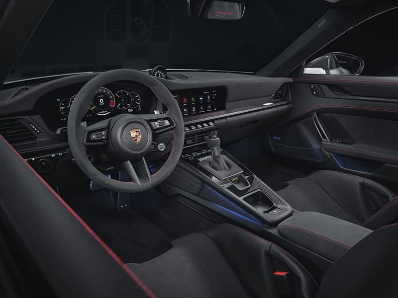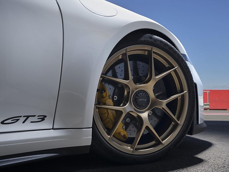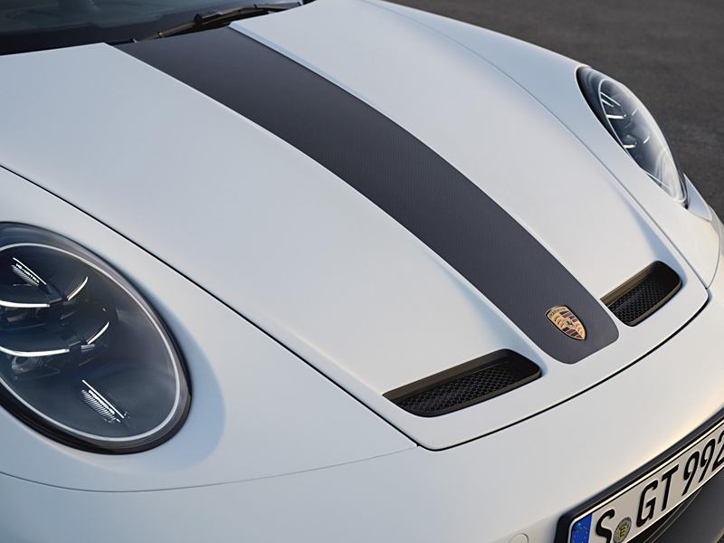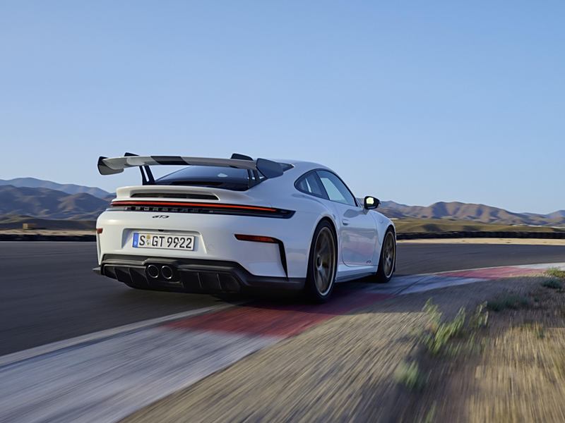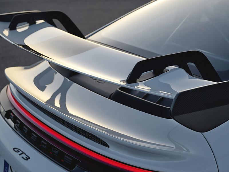 在空气动力学方面,新车的前部进气口增大,尾翼端板采用斜切设计;前桥双摇臂处配备经过专门设计的水滴型空气动力学拖臂,有助于在高速行驶时增加轮拱下压力,并提高制动系统的散热性能,这些是继承自现款 GT3 RS 的尖端技术。