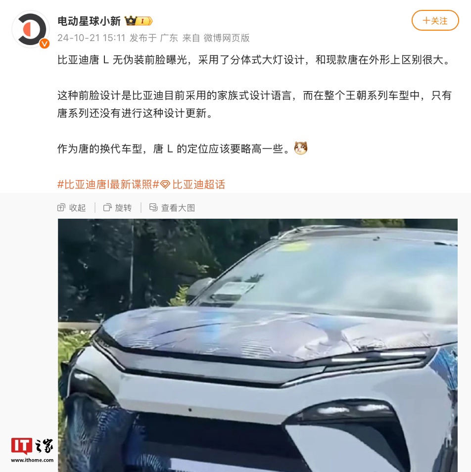 目前关于比亚迪唐 L 的已知信息较为有限,IT之家将持续关注。